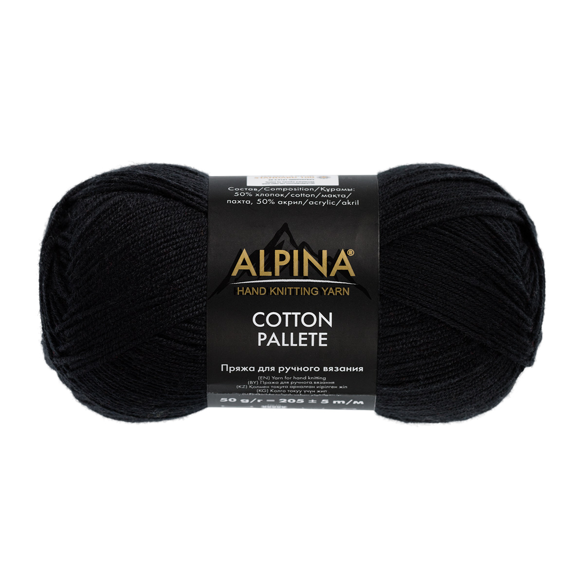 Пряжа ALPINA Cotton Pallete 50% хлопок, 50% акрил 1 х 50 г 205 ± 5 м №02 черный ALP-COP-02
