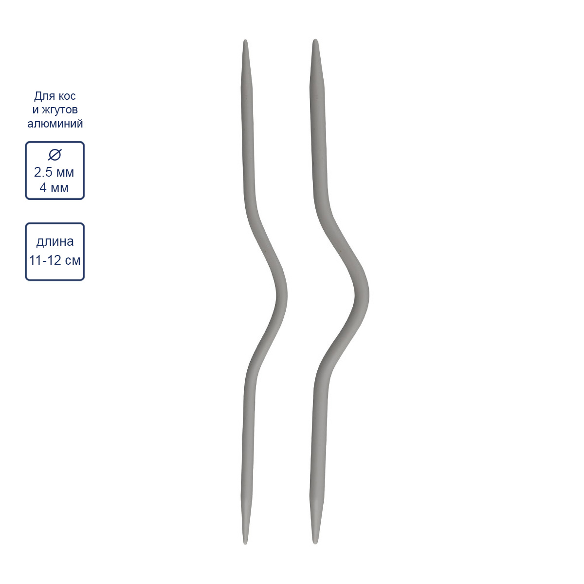 Это специальные спицы, которые используются для вязания узоров с переплетениями (жгутов и кос). Они имеют изогнутую форму и позволяют создавать объемные и интересные узоры. Спицы сделана из алюминия и обладают хорошей прочностью и легкостью, что делает их удобными в использовании.