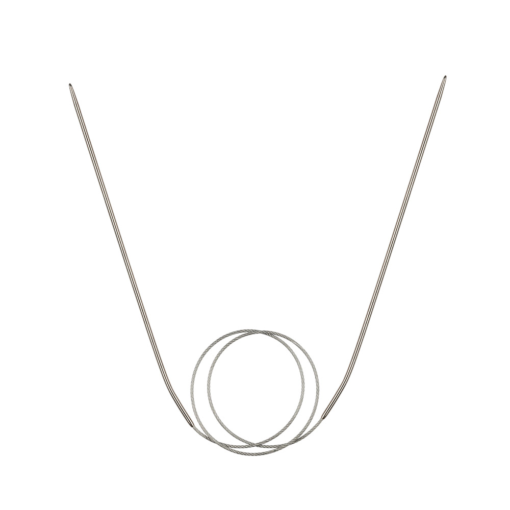 Эти круговые спицы изготовлены из высокопрочной стали марки AISI 201, которая обладает повышенной стойкостью к коррозии. Общая длина 60 см делает их удобными для вязания изделий среднего размера, а их конструкция обеспечивает гладкое скольжение петель и комфорт.