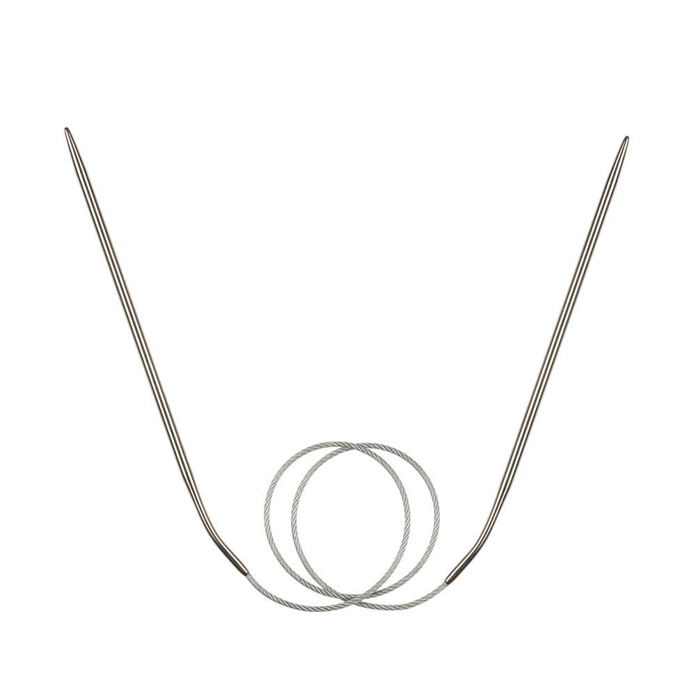 Эти круговые спицы изготовлены из высокопрочной стали марки AISI 201, которая обладает повышенной стойкостью к коррозии. Общая длина 60 см делает их удобными для вязания изделий среднего размера, а их конструкция обеспечивает гладкое скольжение петель и комфорт.