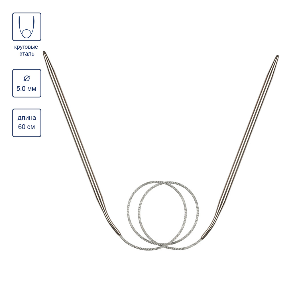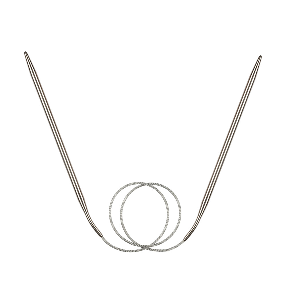 Эти круговые спицы изготовлены из высокопрочной стали марки AISI 201, которая обладает повышенной стойкостью к коррозии. Общая длина 60 см делает их удобными для вязания изделий среднего размера, а их конструкция обеспечивает гладкое скольжение петель и комфорт.
