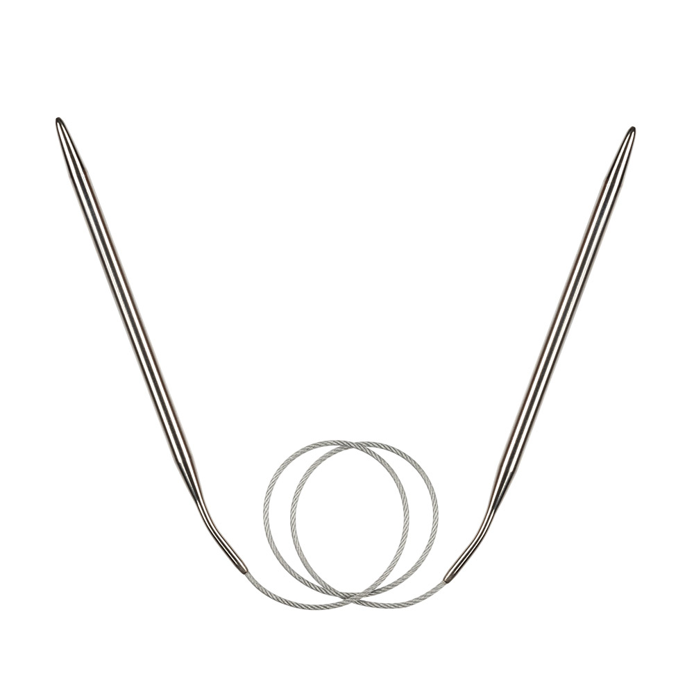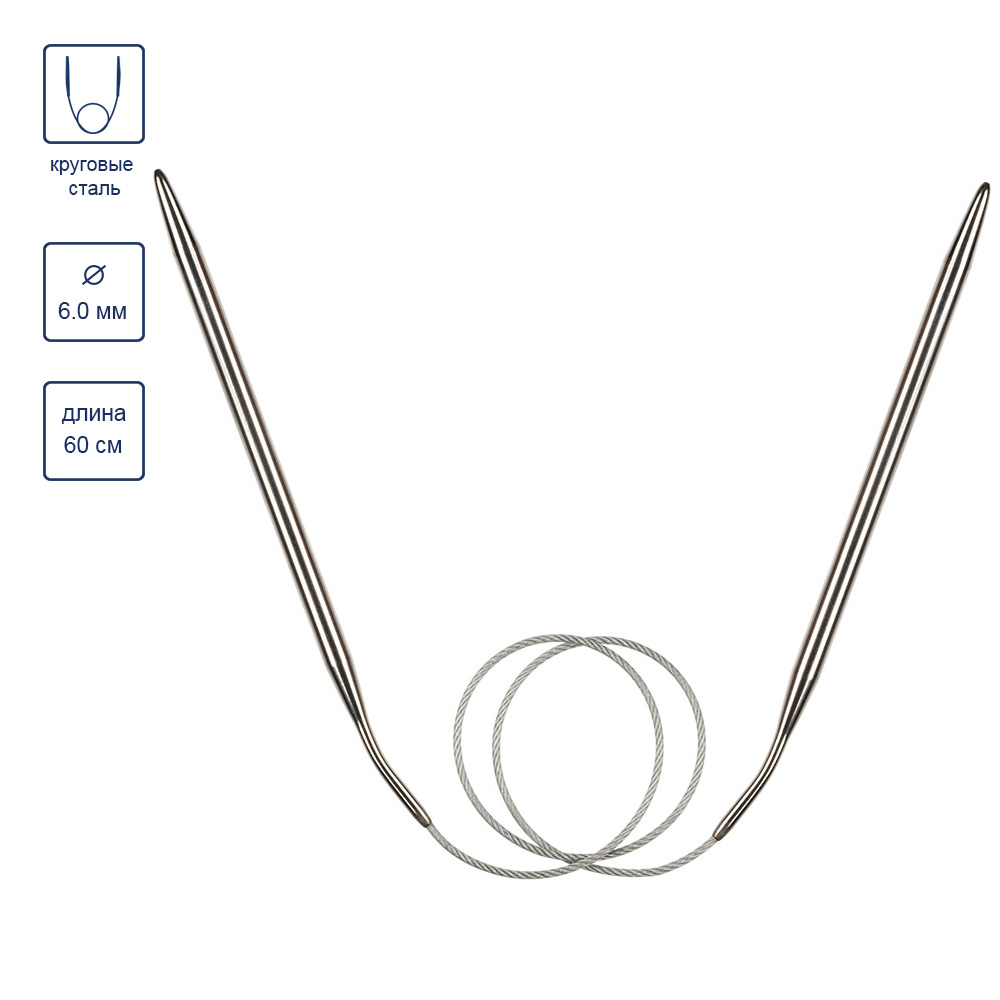 Эти круговые спицы изготовлены из высокопрочной стали марки AISI 201, которая обладает повышенной стойкостью к коррозии. Общая длина 60 см делает их удобными для вязания изделий среднего размера, а их конструкция обеспечивает гладкое скольжение петель и комфорт.
