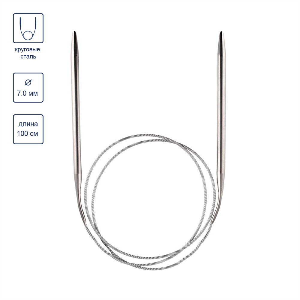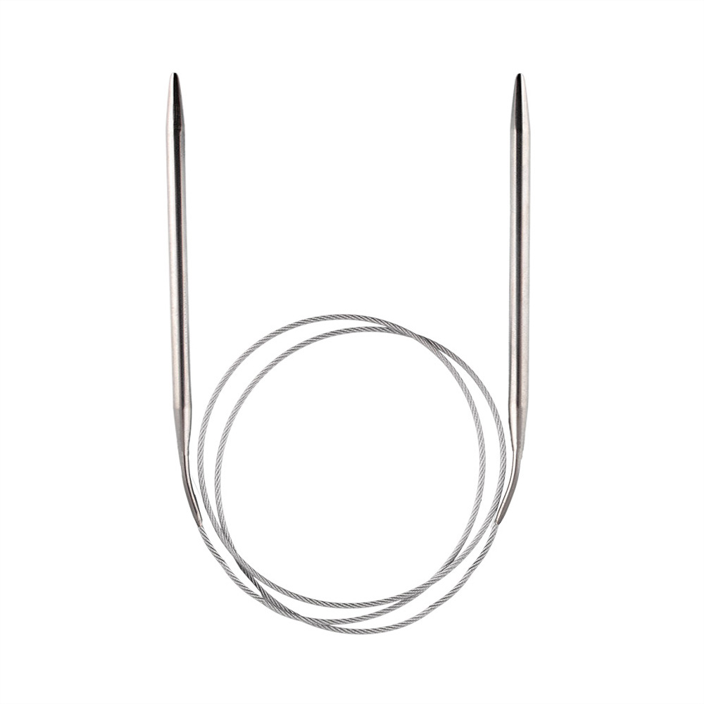 Эти круговые спицы изготовлены из высокопрочной стали марки AISI 201, которая обладает повышенной стойкостью к коррозии. Они идеально подходят для работы с большими изделиями (благодаря длине 100 см), так как равномерно распределяют вес полотна и обеспечивают комфортное вязание.
