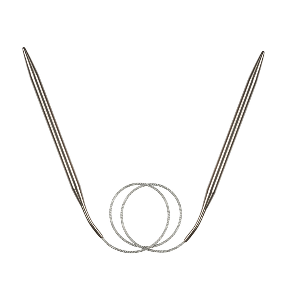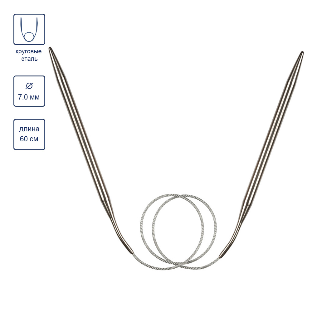 Эти круговые спицы изготовлены из высокопрочной стали марки AISI 201, которая обладает повышенной стойкостью к коррозии. Общая длина 60 см делает их удобными для вязания изделий среднего размера, а их конструкция обеспечивает гладкое скольжение петель и комфорт.