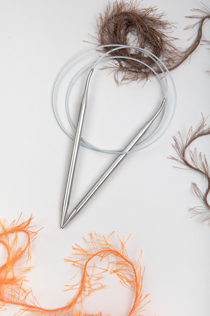 Эти круговые спицы Visantia с леской-тросиком предназначены для вязания крупных изделий, не имеющих швов, таких как свитеры, платья и джемперы. Их стальная конструкция обеспечивает долговечность и комфорт в работе.