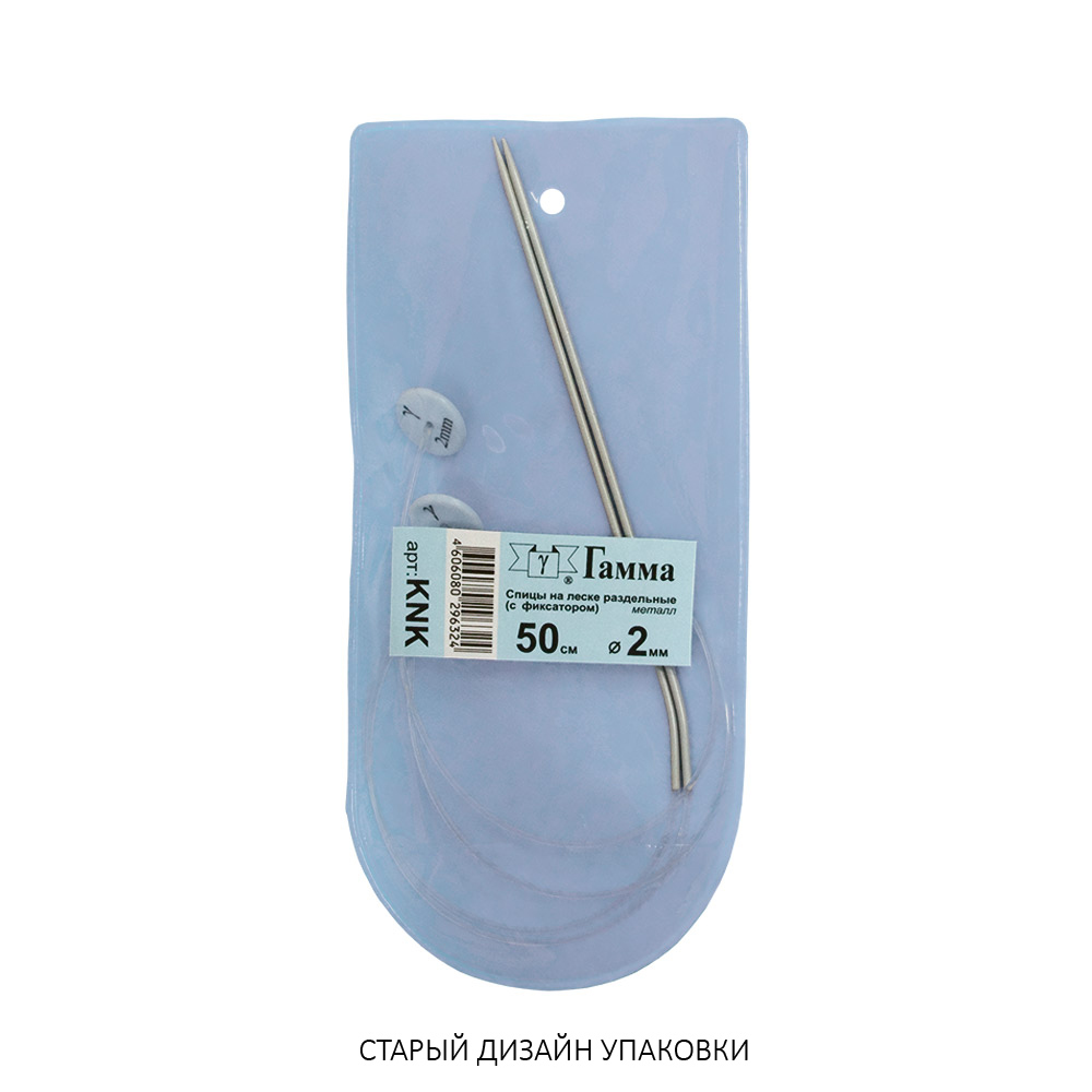 Спицы раздельные на леске "Gamma" KNK — это специальный вид спиц для вязания, состоящий из двух отдельных длинных спиц, соединенных гибким кабелем или леской. Они обеспечивают удобство при вязании круглых и трубчатых изделий.
