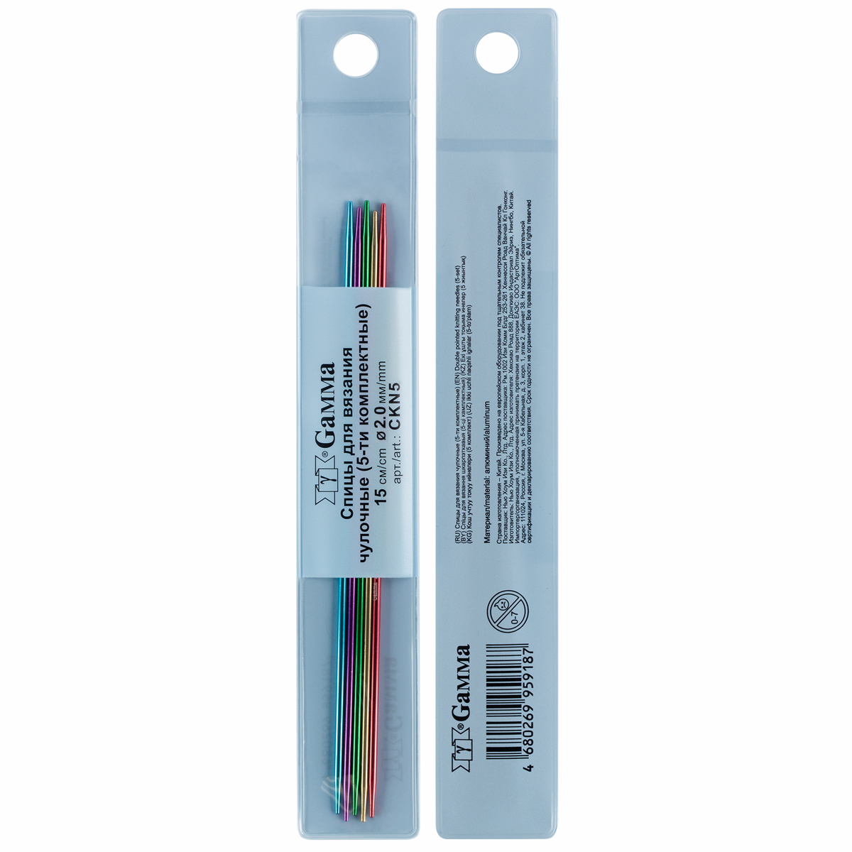 Набор 5-ти комплектных спиц "Gamma" CKN5 — идеальный инструмент для вязания по кругу. Они предназначены для создания небольших и средних изделий: носков, варежек, рукавов и обвязывания горловин. Сделанные из легкого алюминия с ярким анодированным покрытием, эти спицы обеспечат вам комфорт и позитивное настроение в работе.