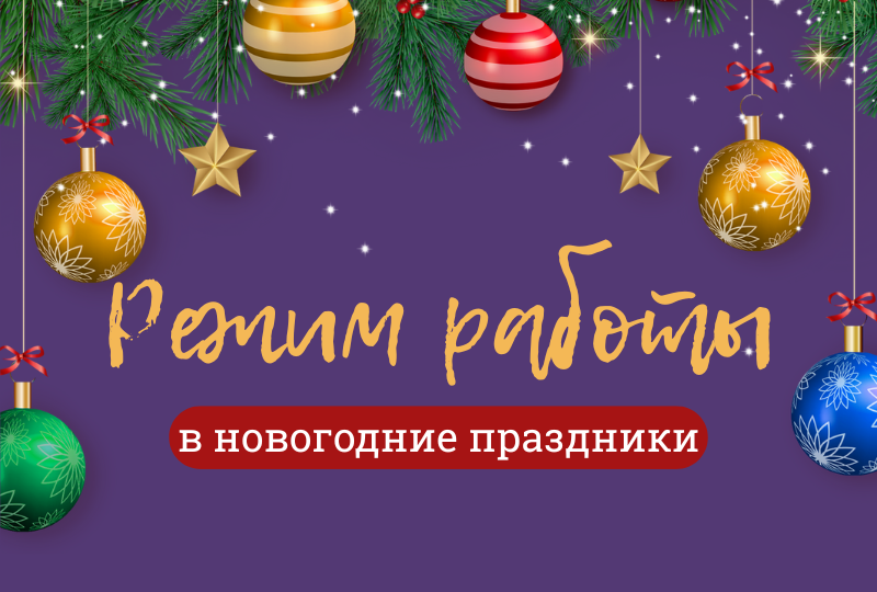 | С 02.01.2026 работаем в обычном режиме – с 10:00 до 21:00 | |