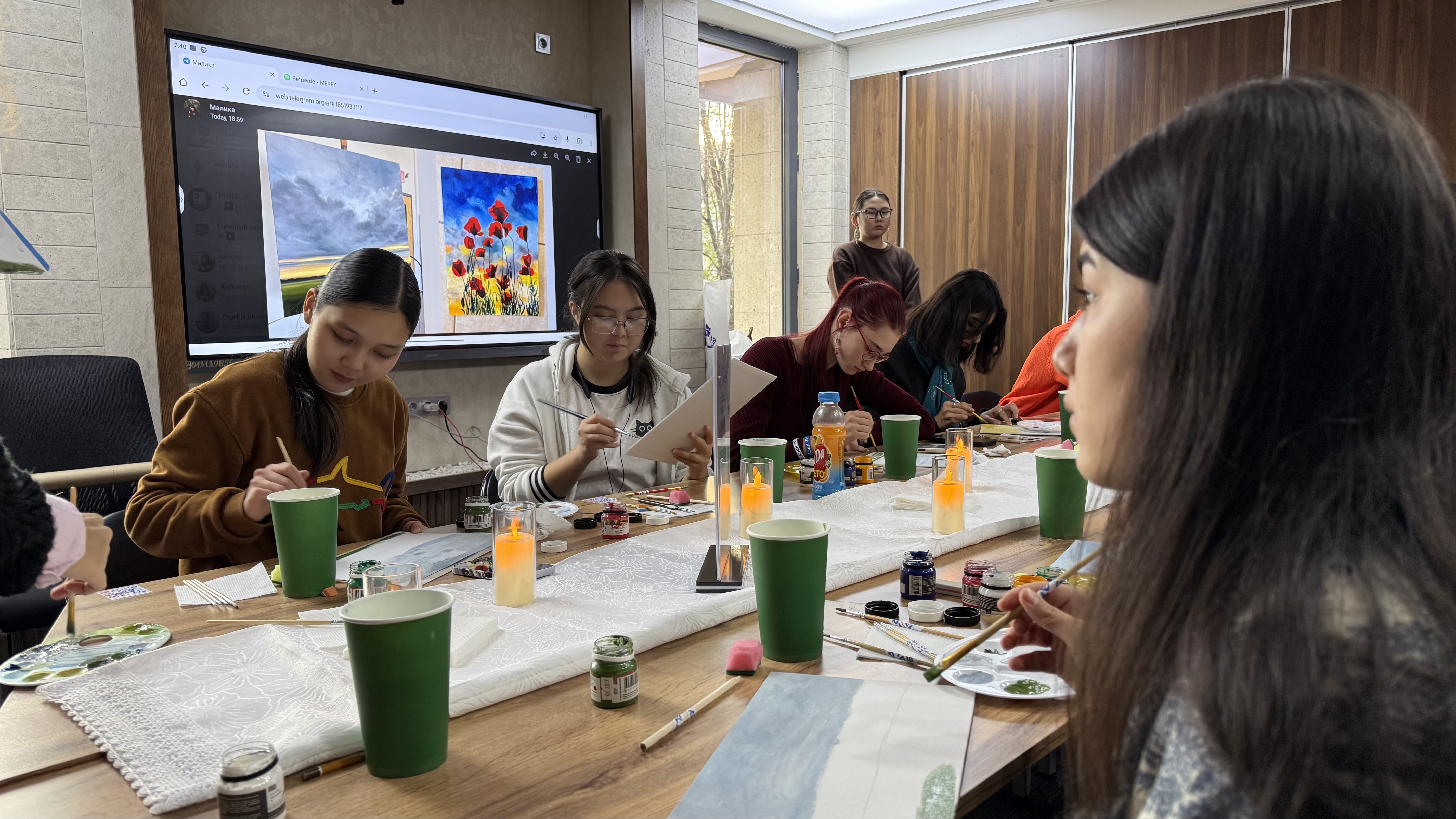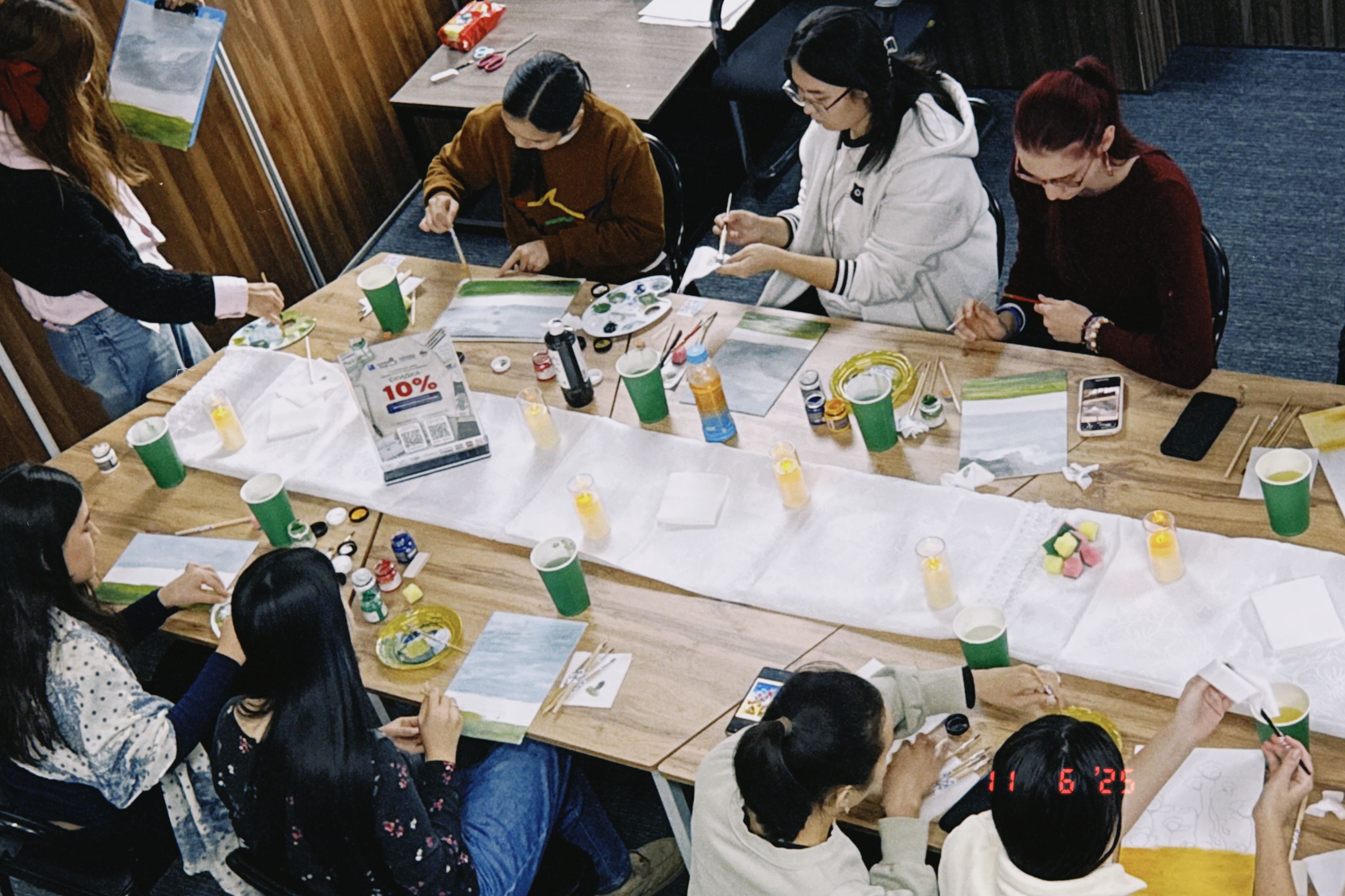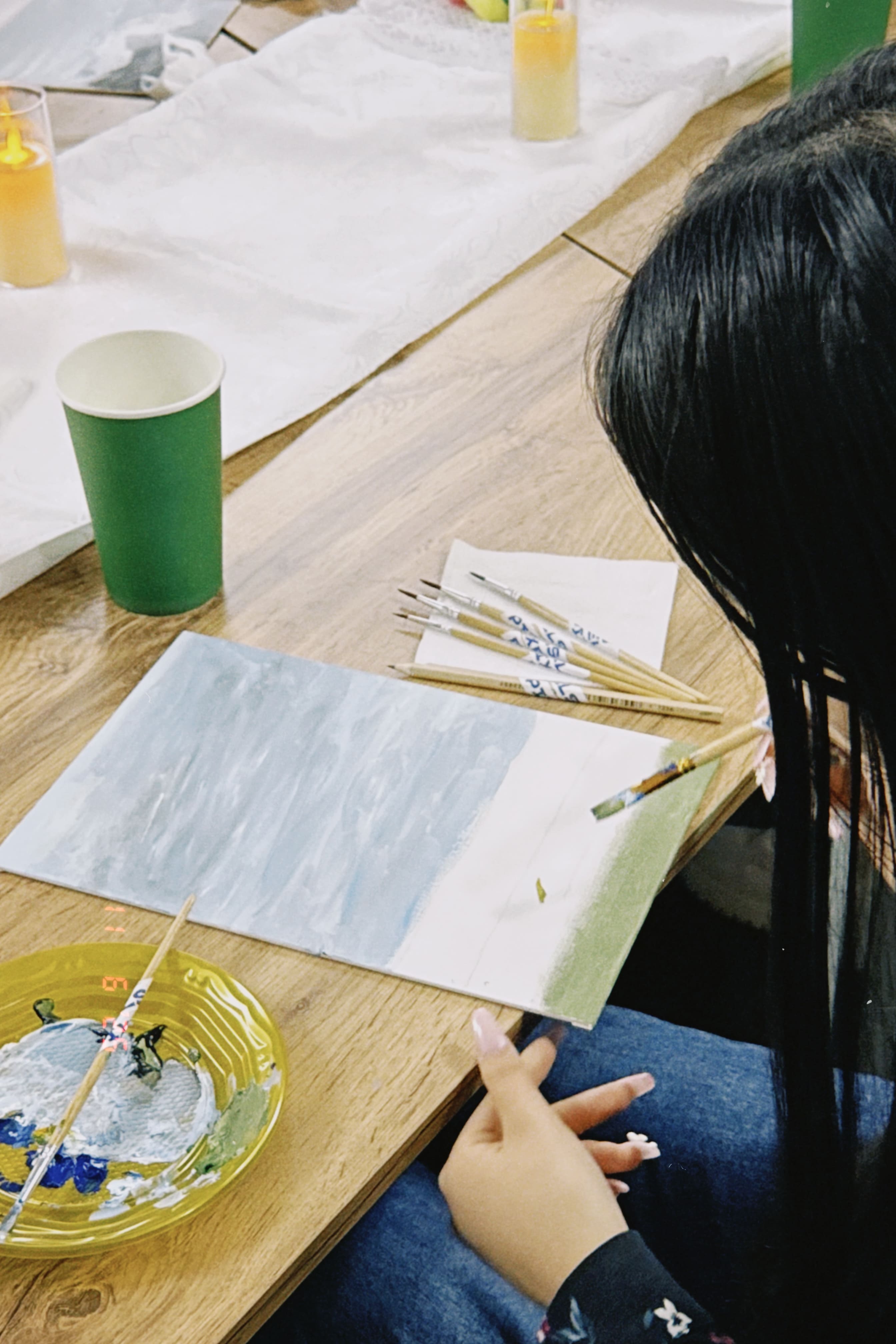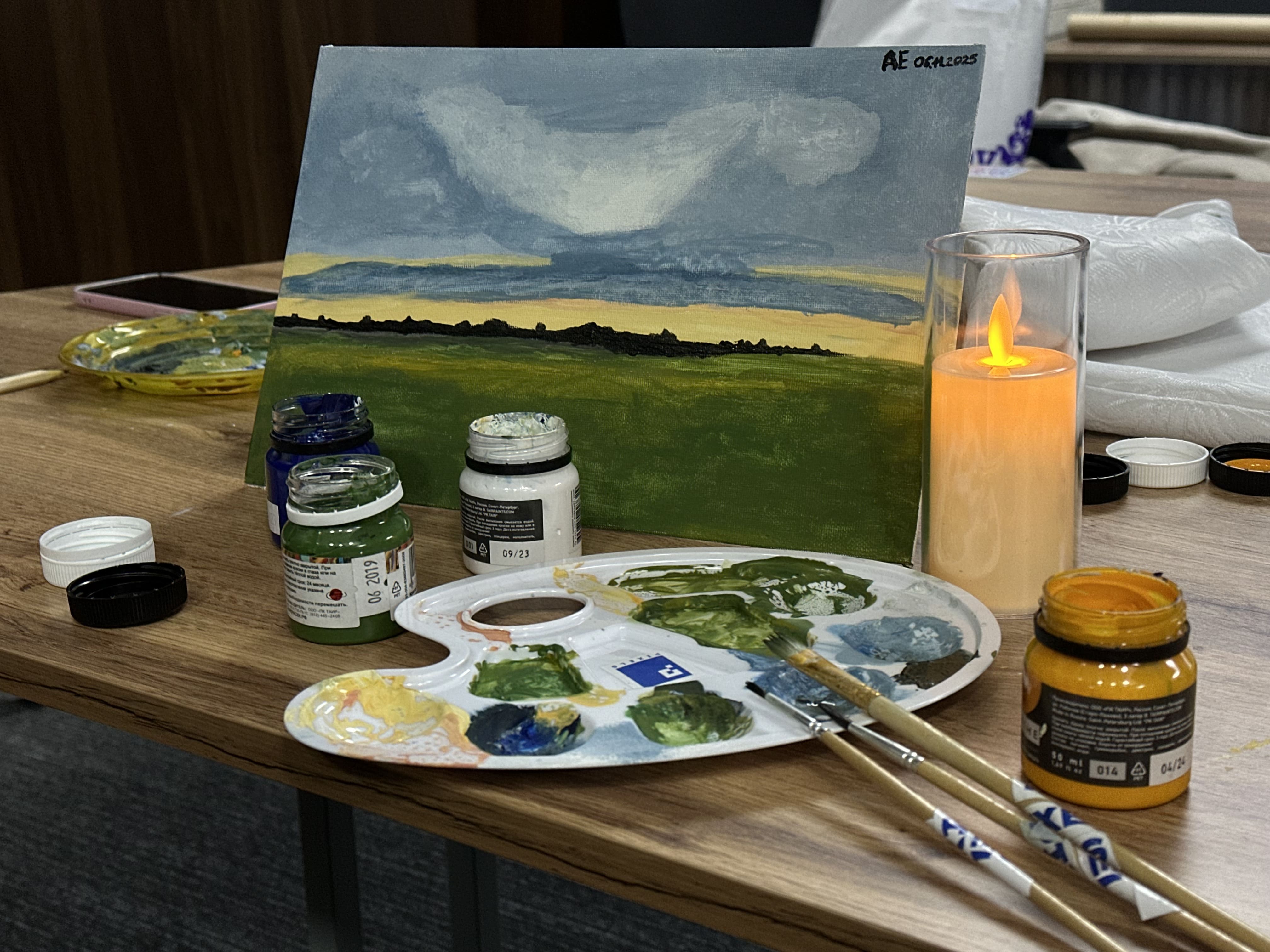 Мероприятие прошло в уютной и творческой атмосфере. Участники писали пейзажи — кто-то выбирал небо и простые формы, а кто-то брался за более детализированные элементы, оттачивая мастерство работы с кистью и красками.