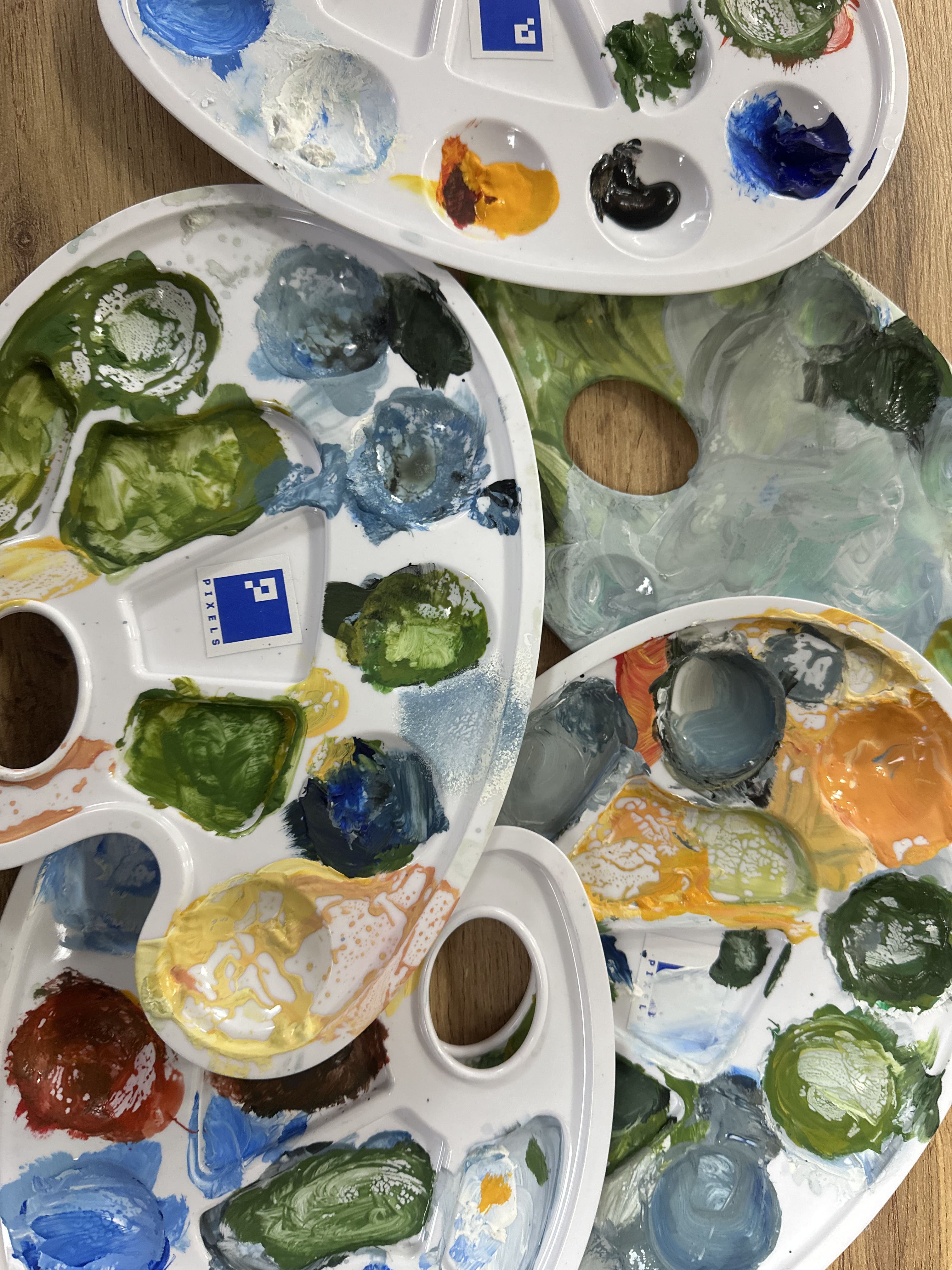 Вторая картина требовала большего внимания и усидчивости. Здесь участники отрабатывали приёмы смешивания красок на палитре и учились передавать цветовые переходы с помощью мазков, создавая выразительную фактуру.
