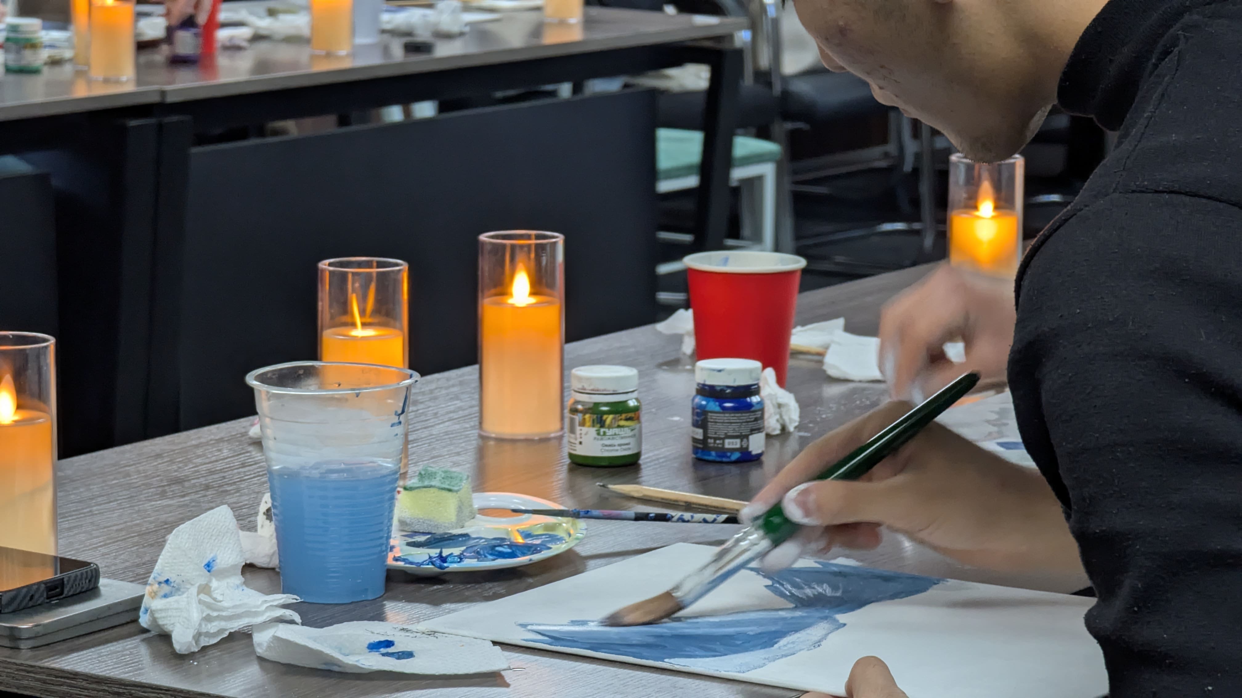 Магазин Hobby Park предоставил все необходимые материалы: краски, холсты бренда «Стихия». Качественные материалы и поддержка организаторов помогли каждому участнику создать яркую и выразительную работу, которую можно было забрать с собой на память.
